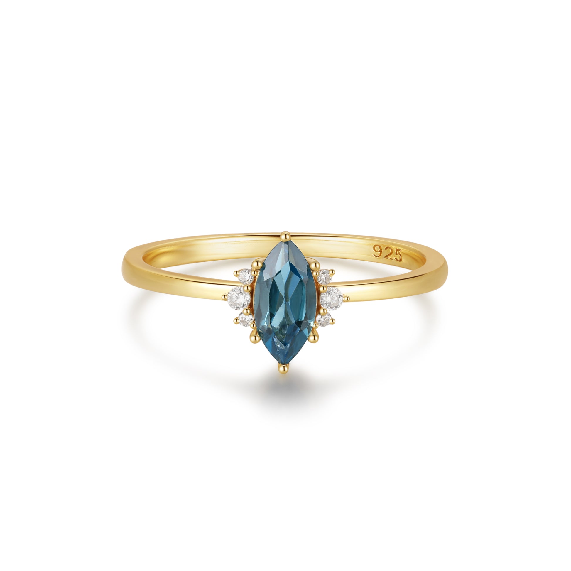 - Stone: London Blue Topaz 8x4mm*1 Marquise Cut, & Cubic Zirconia 1.5mm*2pcs + 1mm*2pcs