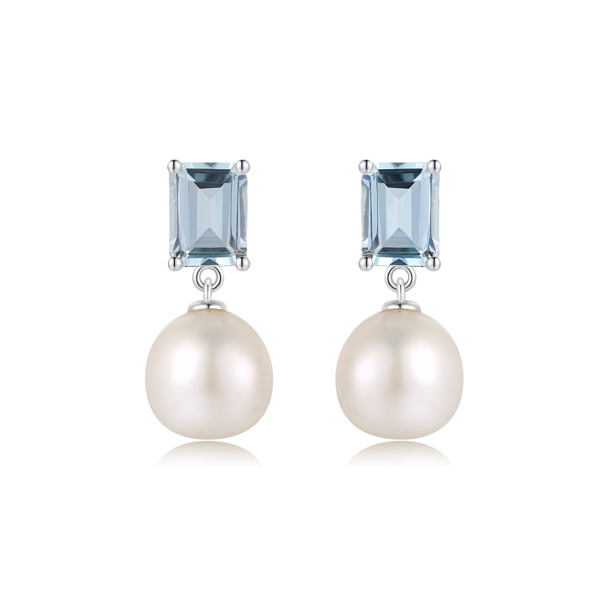 - Stone: Baroque Freshwater pearl 10-11mm & Emerald Cut Sky Blue Blue Topaz 8*6mm